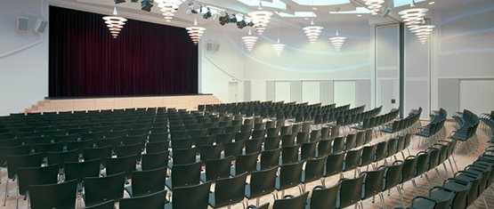 Es gibt einen Großen Saal mit einer Bühne und einen Kleinen Saal.