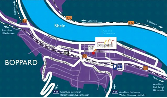 Die Stadthalle Boppard ist gut mit dem Auto und den öffentlichen Verkehrsmitteln zu erreichen.