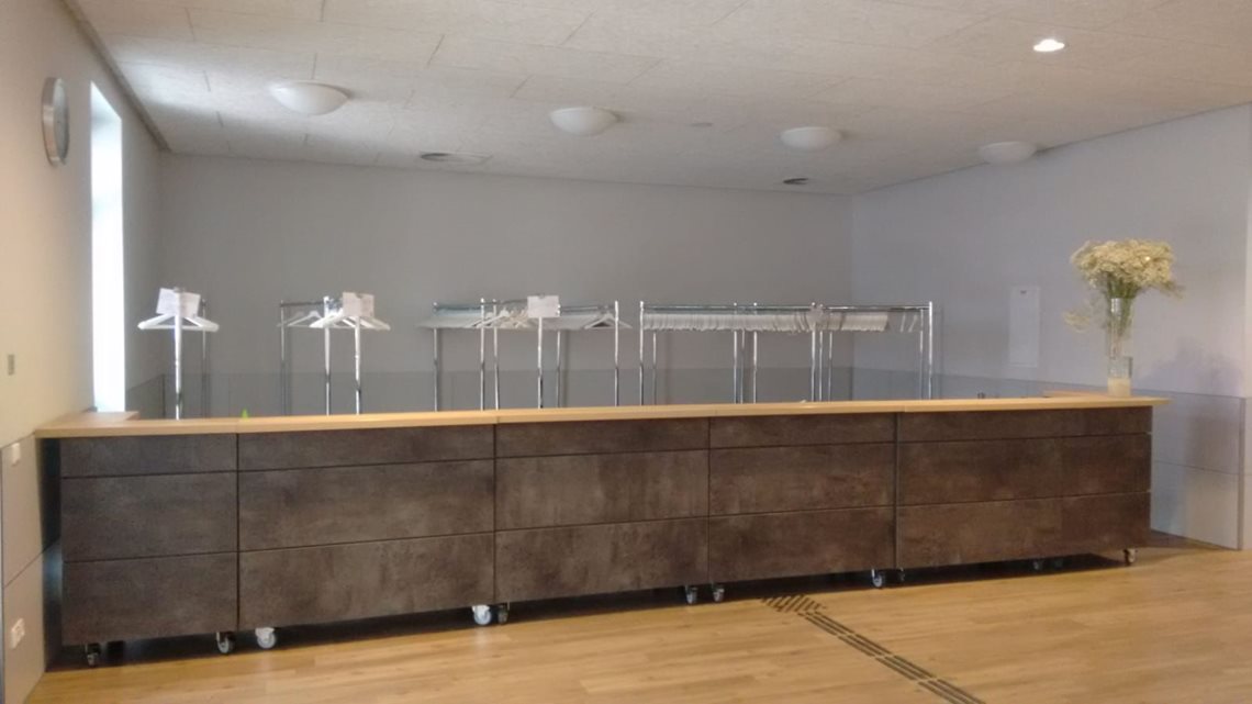 Die Gesamtfläche des Foyers beträgt ca. 350 qm. Dank einer modernen Trennwand ist das Foyer in einen Eingangsbereich mit Garderobe von ca. 150 qm und einer Theke/Veranstaltungsbereich von 200 qm teilbar.
