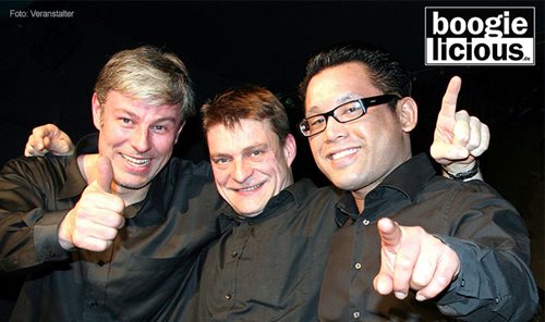 Boogielicious ...ist ein deutsch-niederländisches Boogie-, Blues- und Jazz-Trio, das sich 2007 zunächst mit Eeco Rijken Rapp (Klavier, Gesang) und David Herzel (Schlagzeug) als Duo gegründet hatte, aber schon ein Jahr später als Trio mit Dr. Bertram Bechers Blues-Harmonika noch homogener und abwechslungs-reicher geworden ist Eine der momentan wohl außergewöhnlichsten Boogie-Formationen der Szene in Europa, die die sehr populäre Musik der 20iger, 30iger und 40iger Jahre in das aktuelle Jahrtausend katapultiert. Gegründet 2007 als Duo mit Eeco Rijken Rapp (Klavier, Gesang) und David Herzel (Schlagzeug), kam ein Jahr später Bertram Becker mit der Blues-Mundharmonika hinzu. Die drei Musiker haben sich mit ihren vier Alben auf die vorderen Ränge ihres Genres vorgearbeitet, deren Live-Auftritte immer wieder zu umjubelten Highlights geraten. Ein Trio, das die Liebhaber handgemachter Musik elektrisiert und Boogie Woogie-Fans, Alt-Rock`n Roller und Jazz- und Blues Anhänger gleichermaßen erfreut. Sie bestechen durch ihre unglaubliche Virtuosität, die Einzigartigkeit ihres Repertoires und überzeugen durch ihr brilliantes Zusammenspiel – der Jazz scheint ein Lebensgefühl zu sein!