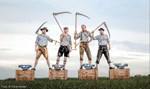 Da steppen Melkschemel und Milchkannen, es rappt der Gummitierzoo, Gabel und Messer improvisieren auf der Pfanne und Messer fliegen in atemberaubendem Tempo auf ein Brotzeitbrettl, das nur Sekunden später als tönender Tischtennisschläger den Takt angibt. Richtig akrobatisch wirds beim groovigen Klappstuhltanz, international wenn eine erdige Kuhglocken-Sinfonie zum tibetischen Klangschalensound mutiert, dem ein neunstimmiges „La Cucaracha“-Pfeifkonzert für Fußbälle folgt. Und mit dem satten Sound von vier Holzfassln können selbst Kodotrommler kaum mithalten. Der Takt der Axt, das Rauschen der Sense, das Zischen des Melkens und zum Abschluss ein Schlaflied aus Zahnpastatuben – das Leben ist Rhythmus pur und „Der Berg groovt!“.