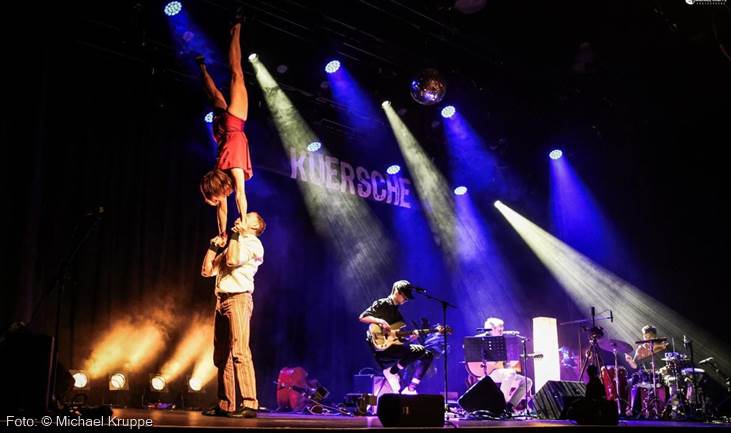 Unterstützt wird seine Musik von illustren Gästen wie den Tänzerinnen und Akrobaten von Acrobat Artists, ebenfalls aus Hannover. Die Artistinnen und Artisten im Alter von 16-60 Jahren (!) werden Kürsche anspruchsvollen Singer/Songwriter-Indie Pop mit niveauvoller Partnerakrobatik, rhythmischem Rope-Skipping und atemberaubender Luftartistik umsetzen.