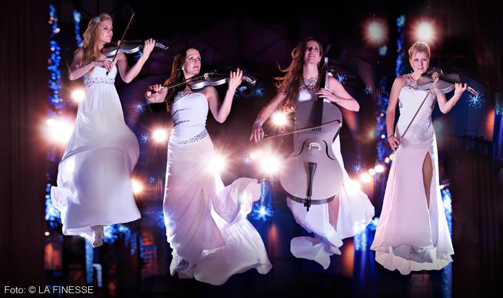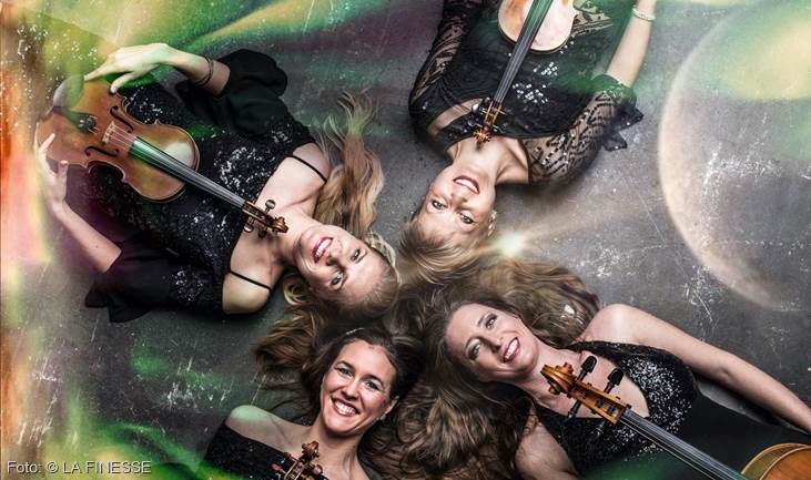 Freuen Sie sich auf ein spektakuläres Bühnenerlebnis, das solistische Virtuosität, den einzigartigen Sound eines Streichquartetts und moderne Arrangements vereint. Die vier Musikerinnen von LA FINESSE begeistern mit Charme, Können und Witz und ziehen ihr Publikum in ihren Bann. Genießen Sie eine moderne Interpretation von Klassik, Filmmusik und Pop, die Sie überraschen wird – denn LA FINESSE bringt frische Elemente mit, die Sie von einem klassischen Streichquartett nicht erwarten würden.