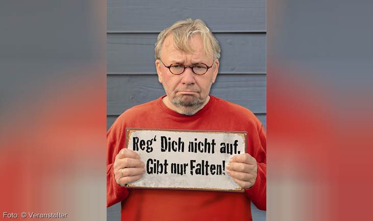 „Reg’ dich nicht auf. Gibt nur Falten!“ ist das neue Programm von BERND STELTER. Es gibt eine Menge zu Lachen. In zwei Stunden werden Falten geglättet, das Hautbild verbessert und die Mundwinkel nach oben gezogen. Es ist quasi eine Zwei-Stunden-Beautybehandlung ganz ohne Botox und lästige Schönheitschirurgen.
