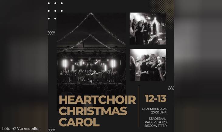 Am 12. und 13. Dezember lädt der HeartChoir, bekannt für seinen unverwechselbaren Sound voller Herz und Soul, zur festlichen HeartChoir Christmas Carol in den Stadtsaal Wetter ein.