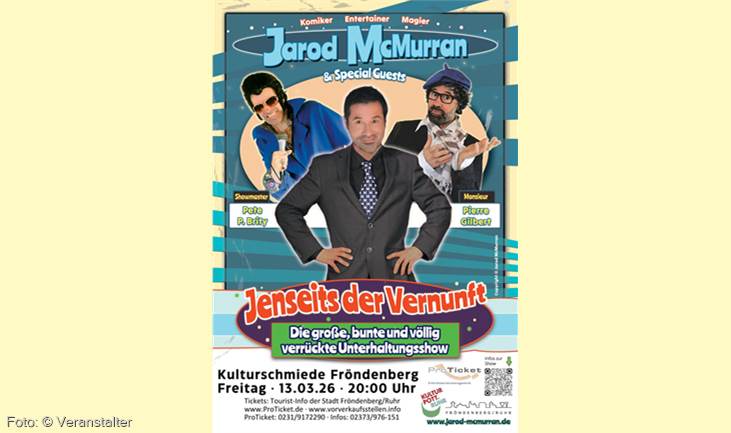 Last but not least wird die Show des Komikers immer wieder mit unglaublich schrägen und dennoch sehr verblüffenden Experimenten, einer komödiantischen Show-Hypnose und grandioser Comedy-Zauberei abgerundet.