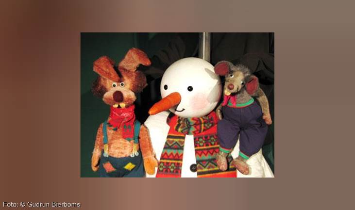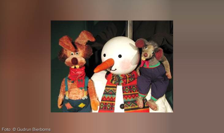 Ein Spiel auf offener Bühne mit (lebens-)großen, „knubbeligen“ Stofffiguren, einer Handvoll Schneegestöber und Musik!