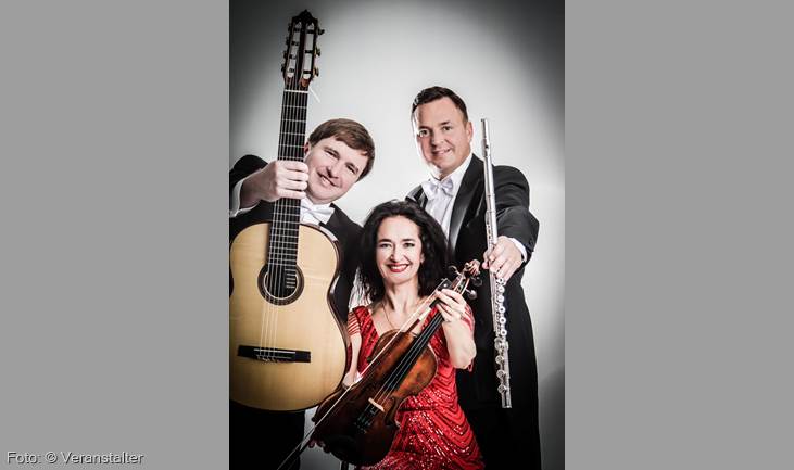 Ein Vormittag voller Musik, Charme und Lebensfreude. Matinee zum Internationalen Frauentag: Trio Classic Deluxe mit Natascha Akinschin (Violine), Eugen Akinschin (Violine), Maxim Lysov (Querflöte und Gitarre)