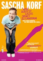 In seinem neuen Programm präsentiert die Turbozunge aus Köln nicht nur gnadenlos Lustiges, sondern Sascha nimmt seine Fans auch mit zu den Wurzeln seiner Schlagfertigkeit und Spontaneität. Am Ende des Abends sind sich alle einig: Lustiger als mit Sascha Korf kann man Spontaneität nicht erleben oder sogar erlernen. Die ersten Sitzreihen werden besonders stark gefordert. Sascha Korf agiert impulsiv, aber sensibel, er stellt keinen bloß. Das Resultat: Das Publikum spielt mit. So entstehen urkomische Dialoge gepaart mit grandioser Situationskomik.“ www.sascha-korf.de